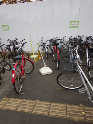 この日,宮城野原駅前に違法駐輪された自転車の数は,いつもより,若干少ないように見える。点字ブロックの上に置かれた自転車は,確実に,いつもより少なめである。