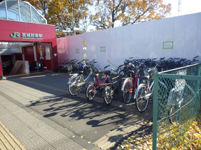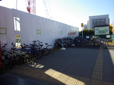 出張のため,いつもより1時間半遅く宮城野原駅前に到着したこの日,違法駐輪された自転車の数は,前日よりは少々多いものの,いつもよりは若干少ないように見える。点字ブロックの上に置かれた自転車は,前日とほぼ同数で,いつもよりは少ない。