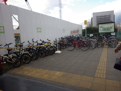 出張から帰り,久々に普段どおりの時間に宮城野原駅前を通りかかったこの日,違法駐輪された自転車の数は,出張前より気持ち少ないように見えた。点字ブロックの上に置かれた数が,2/3位の数である。