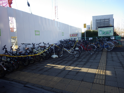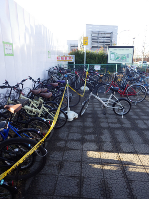 と変わらない。誘導員がいないこの日は,テープの手前側にも駐輪されている。