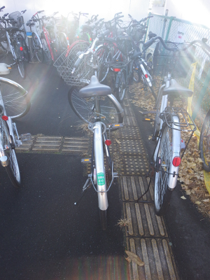 と同程度であった。寒くなってきて,自転車利用者が減ったのだろうか。点字ブロックの上に置かれた自転車の数も,