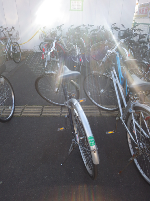 点字ブロックの上に停められた自転車の中には,常連である宮城野高校のステッカーが貼られた自転車に加えて,仙工高のステッカーが貼られた自転車もあった。