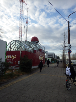 駐輪禁止を示すテープの張り方は,この日も先週末と同じままで,フェンスから自転車1台分のところに一直線に張られている。この日は,自転車の数が少なかったこともあるのか,テープが張られた範囲については,テープの手前側には自転車は停められていなかった。