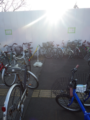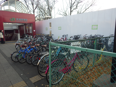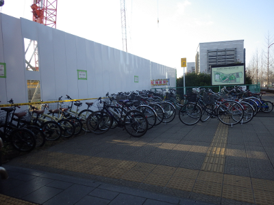 この日,宮城野原駅前に違法駐輪された自転車の数自体は,いつも通りなのだと思われるが,駐輪のされ方に問題があったため,自転車が占拠している面積がいつもより広く見える。点字ブロックの上に置かれた自転車の数は,12月19日と同程度に多かった。