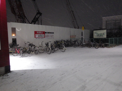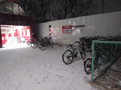 センター試験2日目のこの日,雪が降る朝6時に宮城野原駅に到着した時点で,駅前に違法駐輪された自転車の数は,前日と同程度であった。点字ブロックの上に停められた自転車は2台であった。