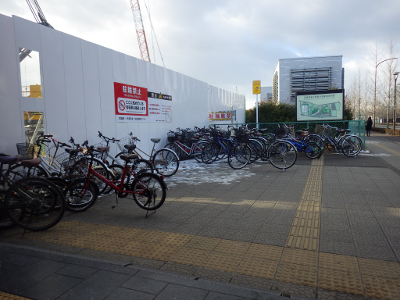 この日,宮城野原駅前に違法駐輪された自転車の数は,概ね,いつもどおりであった。点字ブロックの上に置かれた自転車の数も,いつもと変わらない。ただし,いつもは多くの自転車が前輪が点字ブロックの上になるように置かれているが,この日は,前輪が点字ブロックの上に置かれているものと,後輪が点字ブロックの上に置かれているものの割合が半々であった。そのため,一見,点字ブロックの上に置かれた自転車の数は,少なく感じるかもしれない。