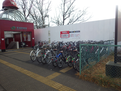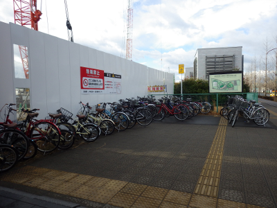 道から雪が消えてこの日,宮城野原駅前に違法駐輪された自転車の数は,概ね,平常通りの数であった。点字ブロックの上に置かれた自転車の数は,いつもより数台少ない感じだ。