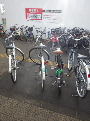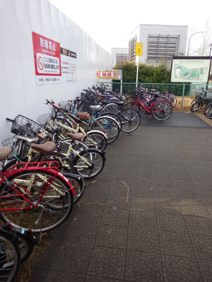 自転車の置かれ方は,駐輪禁止であることを示すテープが張られていた時と,ほとんど変わらない。