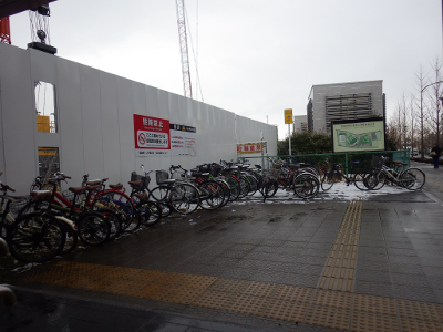 街がうっすらと雪化粧したこの日,宮城野原駅前に違法駐輪された自転車の数は,いつもより少なかった。点字ブロックの上に駐輪された自転車の数も,いつもの半分程度だ。