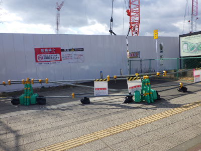 この日,宮城野原駅前に違法駐輪された自転車は,駅舎横に停められた1台と,交差点前の草地に停められた1台の計2台であった。点字ブロックの上に停められた自転車はない。