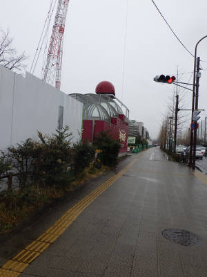 冷たい雨が降るこの日,宮城野原駅前に違法駐輪された自転車は,歩道に停められた1台であった。点字ブロックの上に停められた自転車はない。