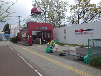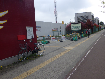 ゴールデンウィーク初日のこの日,所用で昼過ぎに宮城野原駅前を通りかかったところ,駅舎の横に1台違法駐輪された自転車があった。点字ブロックの上に置かれた自転車はなかった。