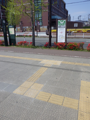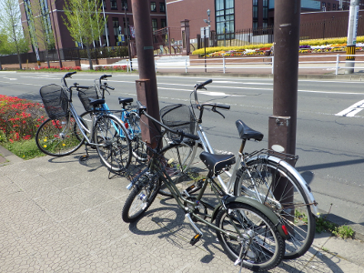 ゴールデンウィーク2日目のこの日,所用で昼前に宮城野原駅前を通りかかったところ,駅前の歩道の車道側に違法駐輪された自転車が4台あった。点字ブロックの利用に邪魔になる位置に置かれた自転車はなかった。