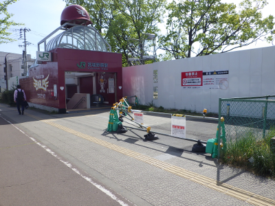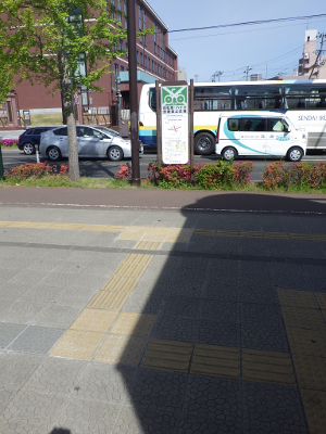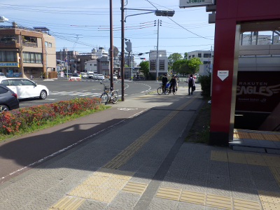 歩道に停めているのは,歩道であれば管理者はJRではなく,道路管理者(ここの場合,仙台市)だから,すぐには警告のタグを貼られないであろうと考えてのことであろうか。しかし,バリアフリー法に係るガイドラインでは,駅周辺の道路は,道路管理者と鉄道会社等関係者が共同で管理することになっているはずなので,歩道側に停めても,JR東日本は警告のタグを貼る等の対処ができるはずであるし,道路管理者である仙台市に通報もできるはずである。素早い対応を求めたい。
