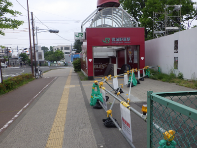 道路を渡った向かい側(仙台育英高校側)の駅舎前