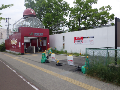 道路を渡った向かい側(仙台育英高校側)の駅舎前
