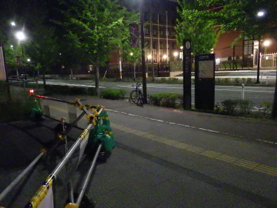 に1台の自転車が違法駐輪されていた。この位置の違法駐輪は,点字ブロックの利用には直接影響はない。しかし,自転車の走行に邪魔であり,事故の原因となりかねない。このような違法駐輪自転車に対しては,違法駐輪をやめるよう警告するタグの貼るなどの対処を迅速に行うよう,管理者にお願いしたい。