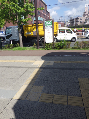 仙石線が止まっていたこの日,宮城野原駅前に違法駐輪された自転車はなかった。点字ブロックの利用に支障となる障害物もなかった。