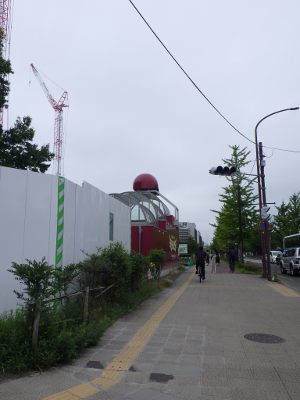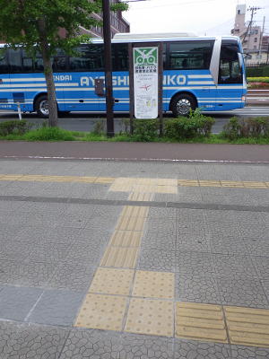 曇天のこの日,宮城野原駅の球場側付近には違法駐輪された自転車はなかった。点字ブロックの利用に支障となる障害物もなかった。