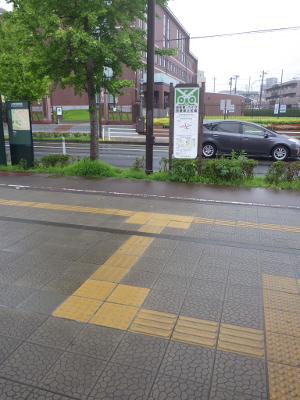 違法駐輪されていた。点字ブロックの端に微妙にかかる位置だ。写真を撮っていたら,持ち主の子供が現れたので,点字ブロックにかかる位置に駐輪すると,視覚障害者が困ることがある旨伝えたところ,頷いて聞いていた。