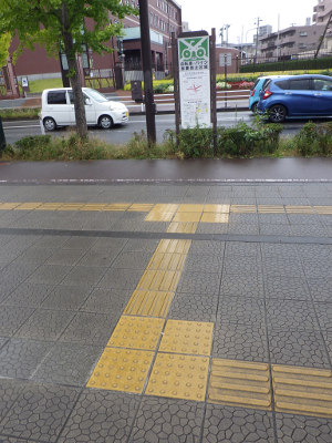 雨が降ったり止んだりのこの日,宮城野原駅前に違法駐輪された自転車はなかった。点字ブロック利用の支障となるような障害物もなかった。