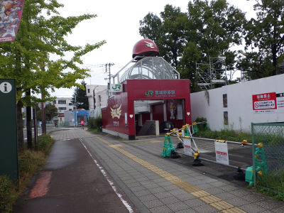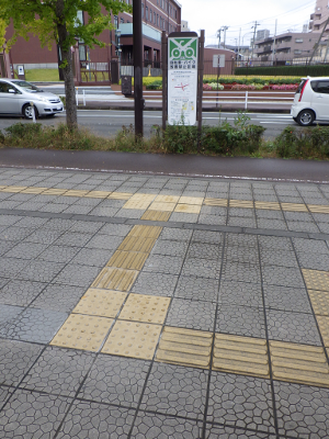 とりあえず雨が止んだ土曜日であるこの日,宮城野原駅前の球場側の出入口付近に違法駐輪された自転車はなかった。点字ブロック利用の支障となるような障害物もなかった。
