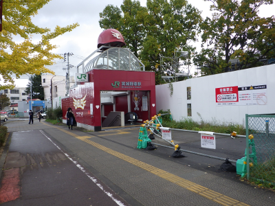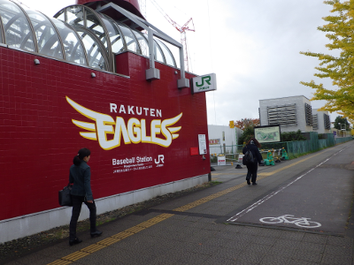 曇天のこの日,宮城野原駅前に違法駐輪された自転車はなかった。点字ブロック利用の支障となるような障害物もなかった。