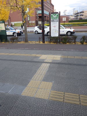 この位置の違法駐輪であれば,すぐには,視覚障害者の点字ブロック利用に支障をきたすことはない。しかし,この自転車を真似して,違法駐輪する自転車が数台に増えると,問題となる位置だ。管理者には,最低限,