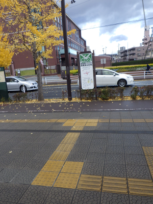 小雨がぱらついていた土曜の朝であるこの日,宮城野原駅前に違法駐輪された自転車はなかった。点字ブロック利用の支障となるような障害物もなかった。