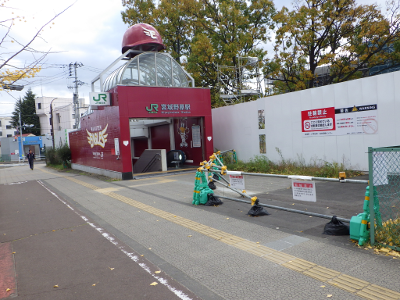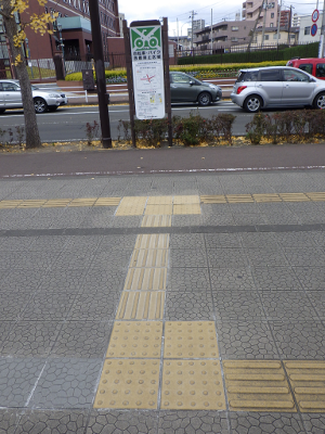 球場か陸上競技場でスポーツイベントがあるのか,スポーティーな格好をした人が多く歩く日曜の朝,宮城野原駅前に違法駐輪された自転車はなかった。点字ブロック利用の支障となるような障害物もなかった。