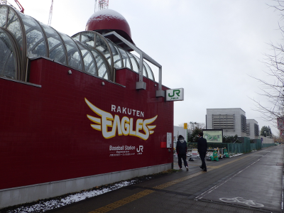 仙台医療センターの新築工事現場脇に設置されたベンチの前には,今日も