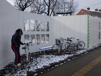 仙台市内で初積雪となったこの日,宮城野原駅前に違法駐輪された自転車はなかった。点字ブロック利用の支障となるような障害物もなかった。