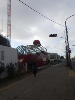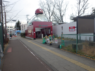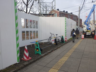 仙台医療センターの新築工事現場脇のベンチの周りの放置自転車