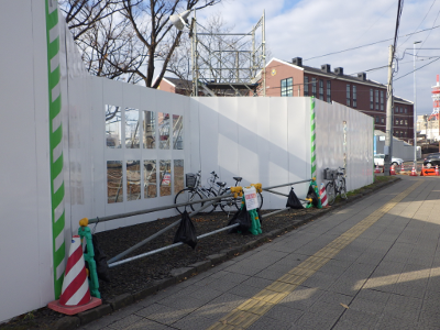 だ。この日も,バリケードの外側に無理やり違法駐輪をするものがいた。繰り返しになるが,この位置に1台自転車が停められているだけであれば,点字ブロックの利用の支障にはならないが,真似をする自転車が増えてくると,確実に,点字ブロックの利用の支障につながることを指摘しておこう。