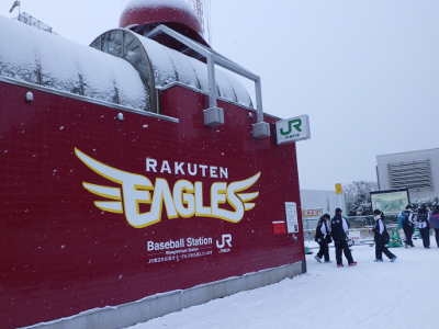 雪が積もったこの日,宮城野原駅前に違法駐輪された自転車はなかった。点字ブロックは雪に埋もれかけていたが,それ以外に利用の支障となるような障害物はなかった。