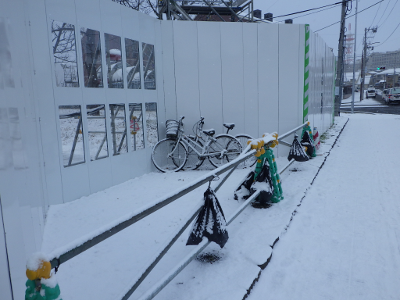 には,2台の自転車が放置されたままだ。この場所は工事の邪魔になるような場所ではないので,この状況はベンチ利用者,自転車放置者,工事関係者誰にとってもプラスにはならない。そういった形で,この一件は落着ということにするのであろうか。興味あるところだ。