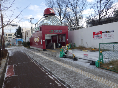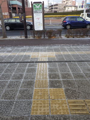 路面がところどころ凍っていたこの日,宮城野原駅前に違法駐輪された自転車はなかった。点字ブロックの利用の支障となるような障害物もなかった。