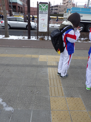 点字ブロックは,また,雪化粧していた。この日は,電車を降りた女子高生(?)が,よりによって,点字ブロックの上でスマホをいじっていた。点字ブロックの意味をわかっていないようだ。