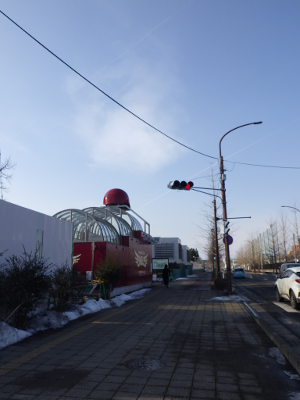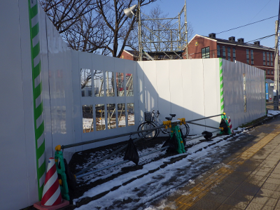 仙台医療センターの新築工事現場脇の旧ベンチの周り