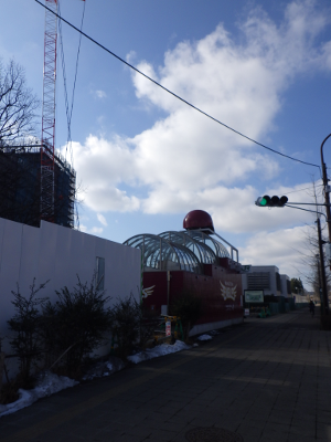 仙台医療センターの新築工事現場脇の旧ベンチの周り