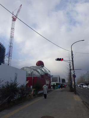 仙台医療センターの新築工事現場脇の旧ベンチの周り