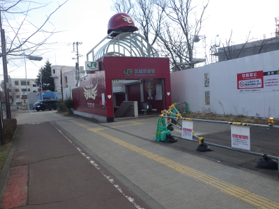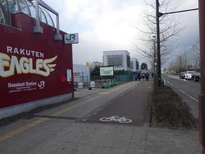 普段より1時間程前に宮城野原駅前に到着したこの日,球場側の駅舎付近に違法駐輪された自転車はなかった。また,点字ブロックの利用を妨げるような障害物はなかった。