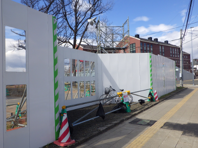 仙台医療センターの新築工事現場脇の旧ベンチの周りには,昨年末から放置された2台の自転車が,未だ放置されっぱなしになっていた。しかし,移設されたベンチの移設先である休憩場所には,違法駐輪された自転車はなかった。また,交差点角の空き地にも,違法駐輪された自転車はなかった。