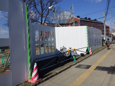 しかし,現仙台医療センターと新築工事現場が挟む通りの駅から遠い側の工事現場前に1台の自転車が違法駐輪されていた。駅近辺の管理が厳しくなったから,この位置に違法駐輪するようになったのだろうか。しばらく観察が必要そうだ。