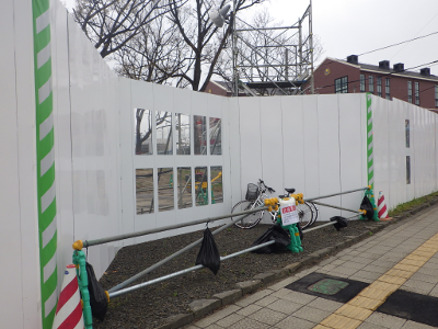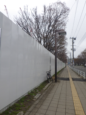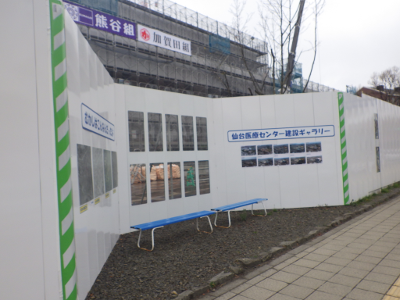 同様に,現仙台医療センターと新築工事現場が挟む通りの駅から遠い側の工事現場前に
