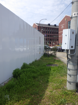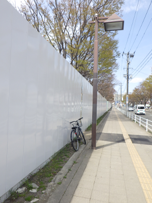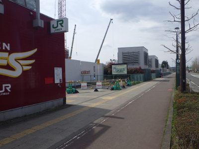 現仙台医療センターと新築工事現場が挟む通りの駅から遠い側の工事現場前