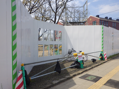 仙台医療センターの新築工事現場脇の旧ベンチの周り