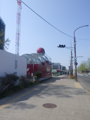 仙台医療センターの新築工事現場脇の旧ベンチの周り