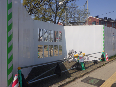 現仙台医療センターと新築工事現場が挟む通りの駅から遠い側の工事現場前