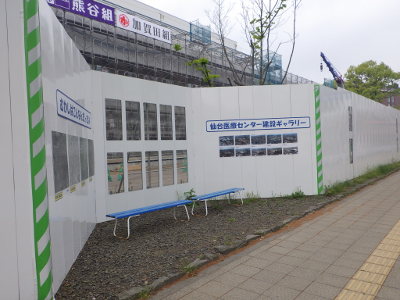 仙台医療センターの新築工事現場脇の旧ベンチの周り